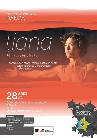 El Auditorio de la Casa de la Juventud de El Chorrillo acogerá este sábado, 28 de abril, el espectáculo de danza contemporánea “Tiana”, de Paloma Hurtado. El espectáculo, organizado por la Concejalía de Cultura del Ayuntamiento de El Rosario, que dirige Fidel Vázquez (Sí se puede), cuenta con la colaboración del Cabildo de Tenerife, a través del programa Tenerife Artes Escénicas, y servirá para celebrar el Día Internacional de la Danza que se conmemora cada 29 de abril.