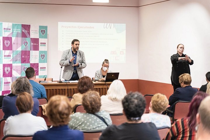 El concejal de Bienestar Social y Calidad de Vida del Ayuntamiento de La Laguna, Rubens Ascanio, presentó este martes, 25 de mayo, a las asociaciones y colectivos del municipio las líneas estratégicas del Área para fortalecer los servicios sociales y las políticas de cuidados en el municipio. En el encuentro, al que asistieron medio centenar de personas de los ámbitos de la discapacidad, mayores, deportes, empleo, sociales y asociaciones vecinales, se explicaron todas las acciones y avances realizados, así como el plan de actuación para los próximos meses.