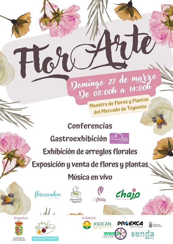 El Mercado del Agricultor y el Artesano de Tegueste acoge este domingo, 27 de marzo, ‘FlorArte’, una iniciativa que reúne a cuatro comercios del municipio dedicados a la floristería y al cultivo de plantas y flores para exponer y dar a conocer sus productos a los vecinos y visitantes. La muestra se combinará con una serie de actividades dinamizadoras como charlas y una degustación gastronómica y de vinos de Tegueste.